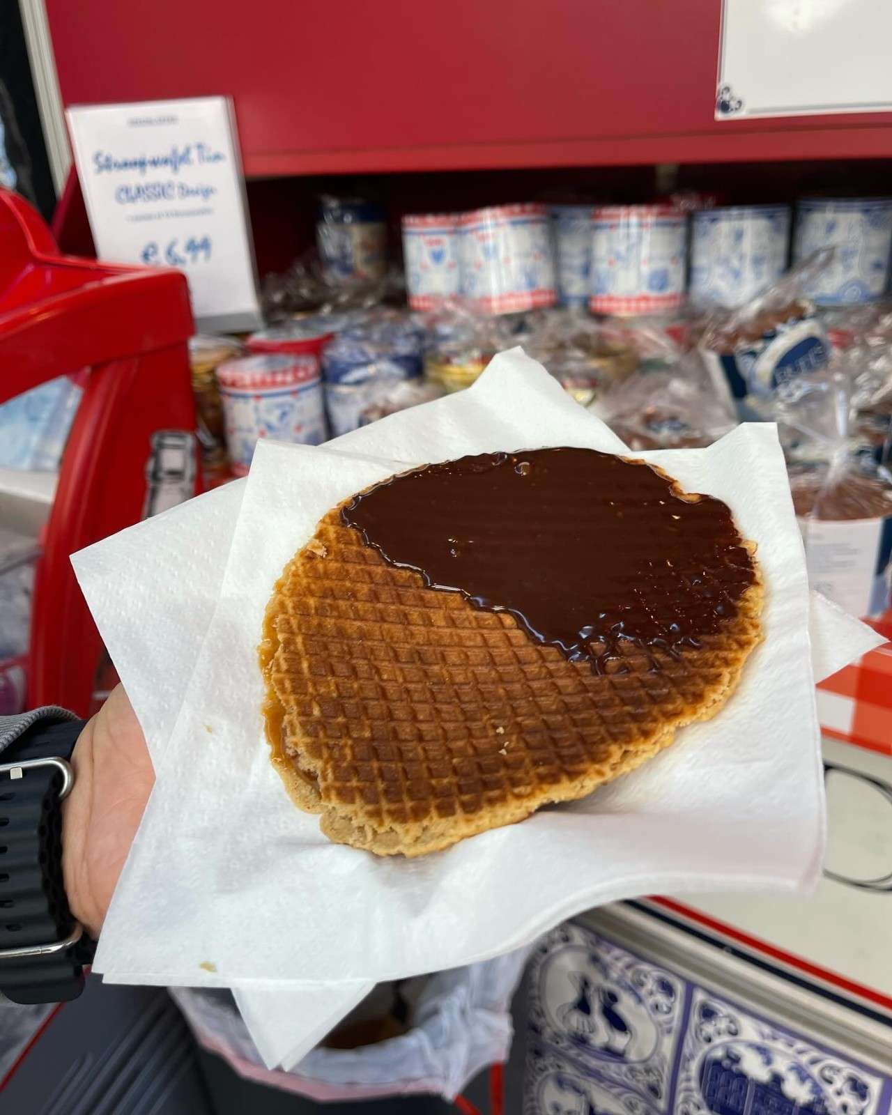 • They hand you the stroopwafel warm, and the caramel is basically trying to escape.