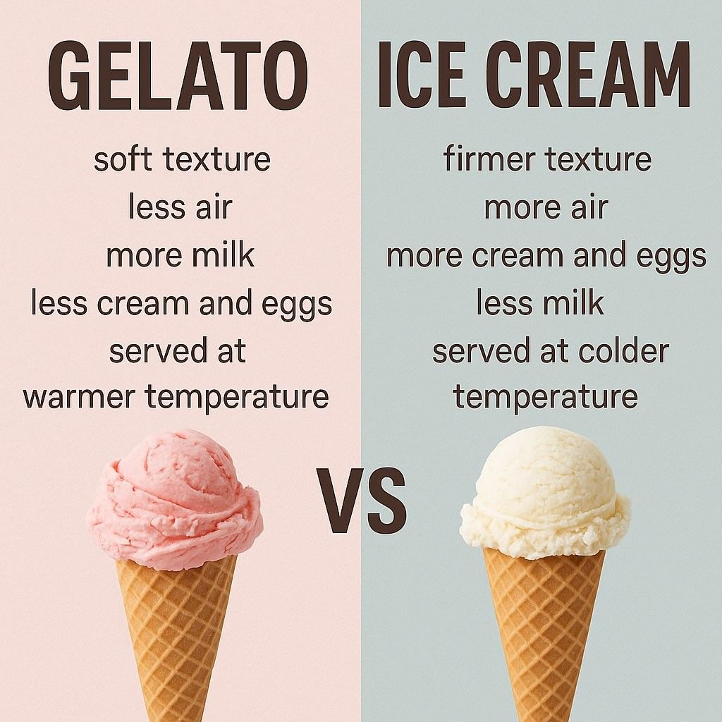 - Gelato is creamy comfort; granita is cold wake-up energy.