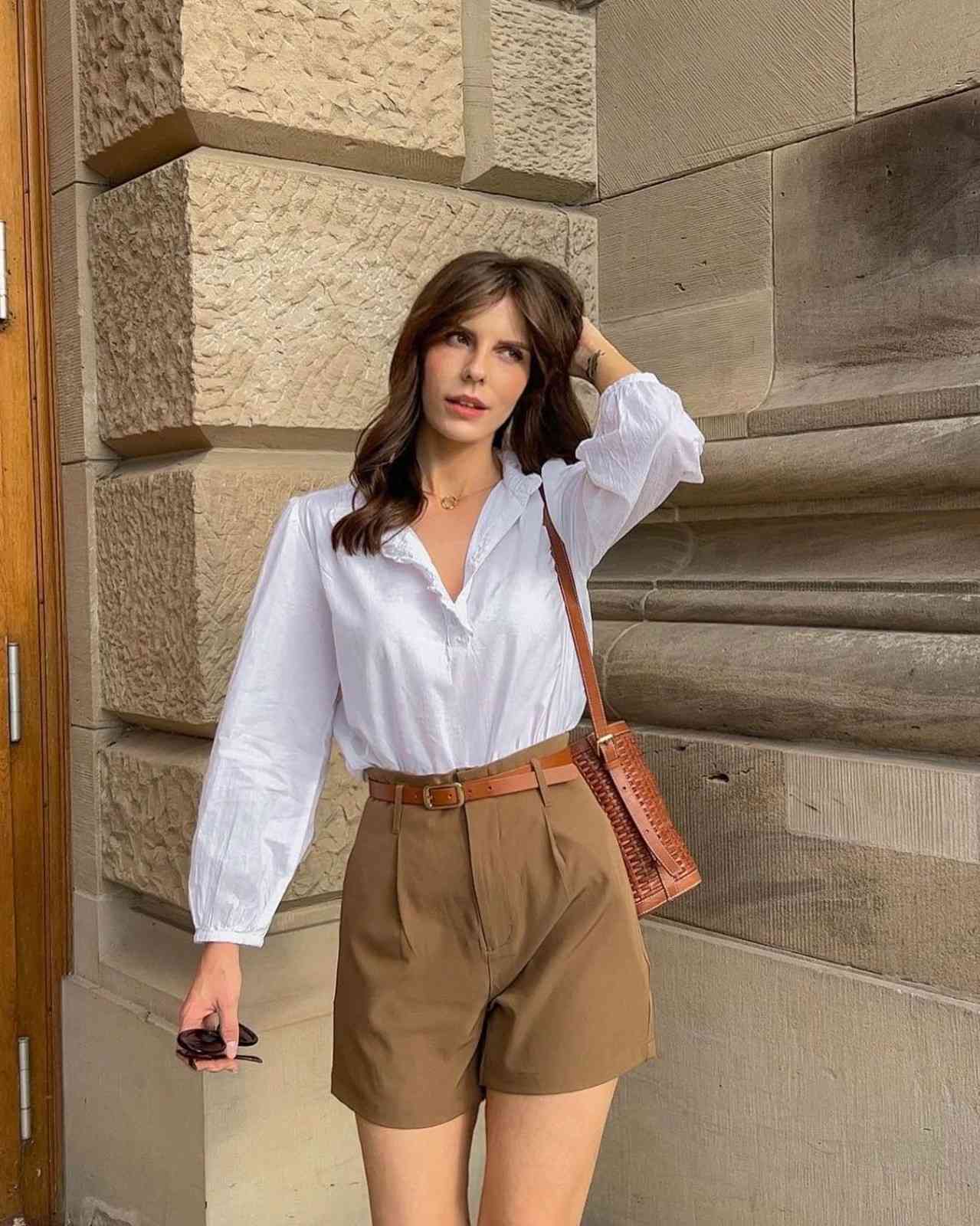 4. Linen Button-Up + Khaki Shorts