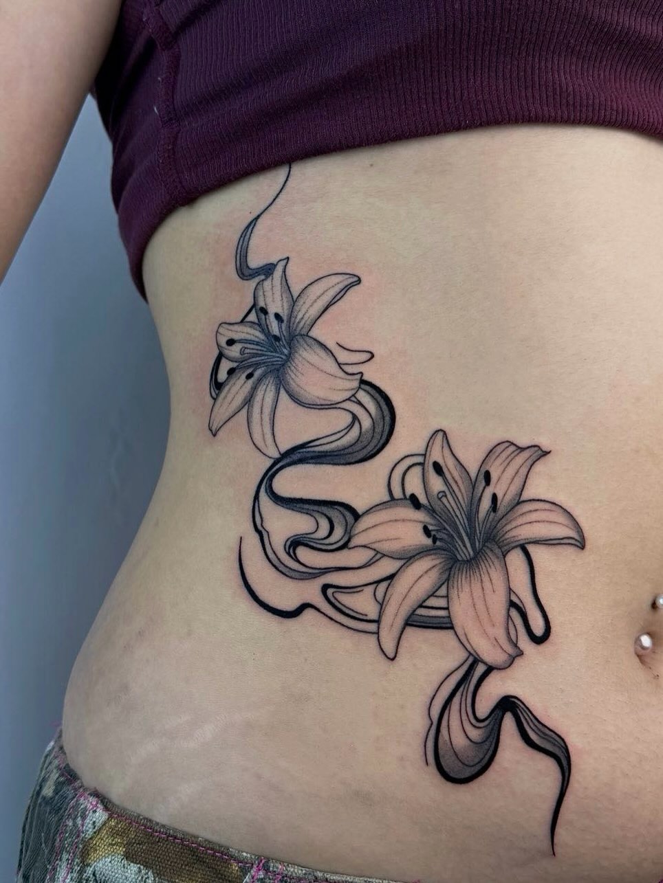 Side Tummy Tattoos For Women are a placement choice known for elegance, body contour alignment, and visual flow. This area allows designs to follow natural curves, which makes it suitable for script, florals, ornamental lines, and symbolic artwork. Because the canvas is both flexible and partially concealable, it appeals to people who want expressive body art with selective visibility. Placement strategy is critical. The side abdomen stretches and contracts with movement, posture, and weight fluctuation, so artists typically adapt line weight and spacing to preserve design integrity over time. Vertical or diagonal compositions tend to age better than dense horizontal blocks. Pain tolerance is another factor — this zone ranks moderate to high on sensitivity due to thinner fat layers and nerve presence.