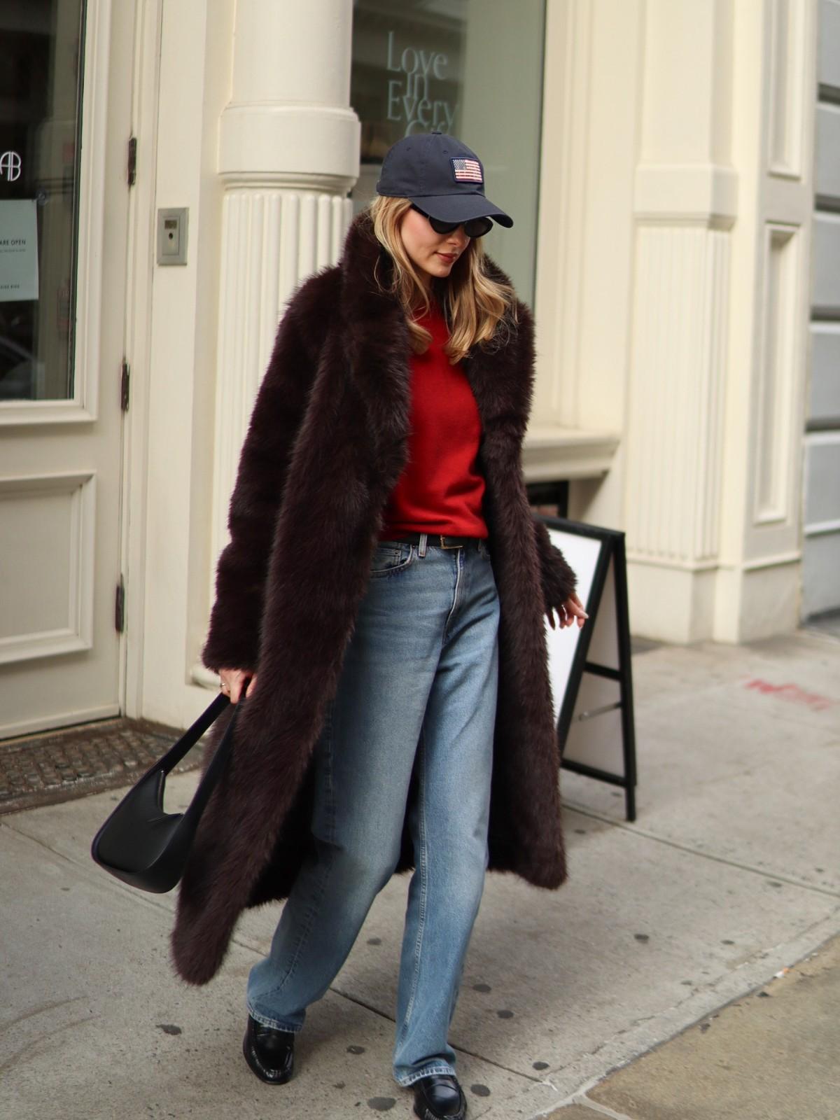 - Straight-leg jeans make the whole outfit feel relaxed
