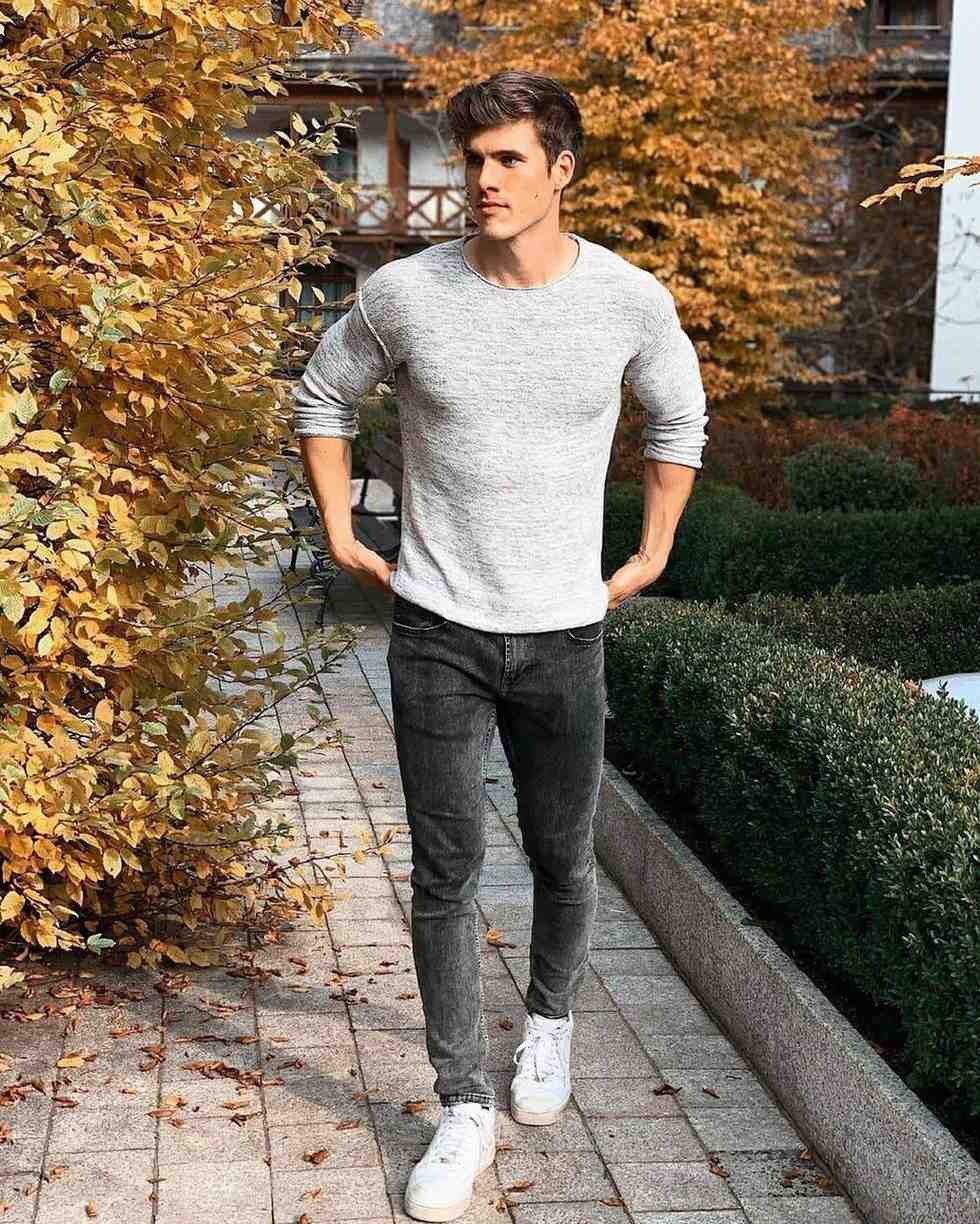 1. Sweater with Slim Black Jeans and Sneakers